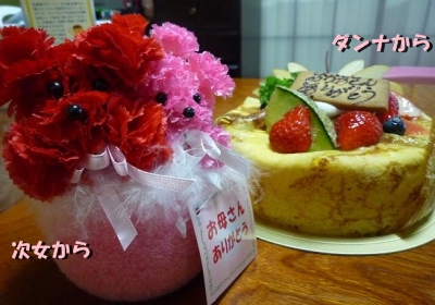 ダンナからは薔薇&ケーキ・・・長女からは紫陽花のプレゼントまで・・